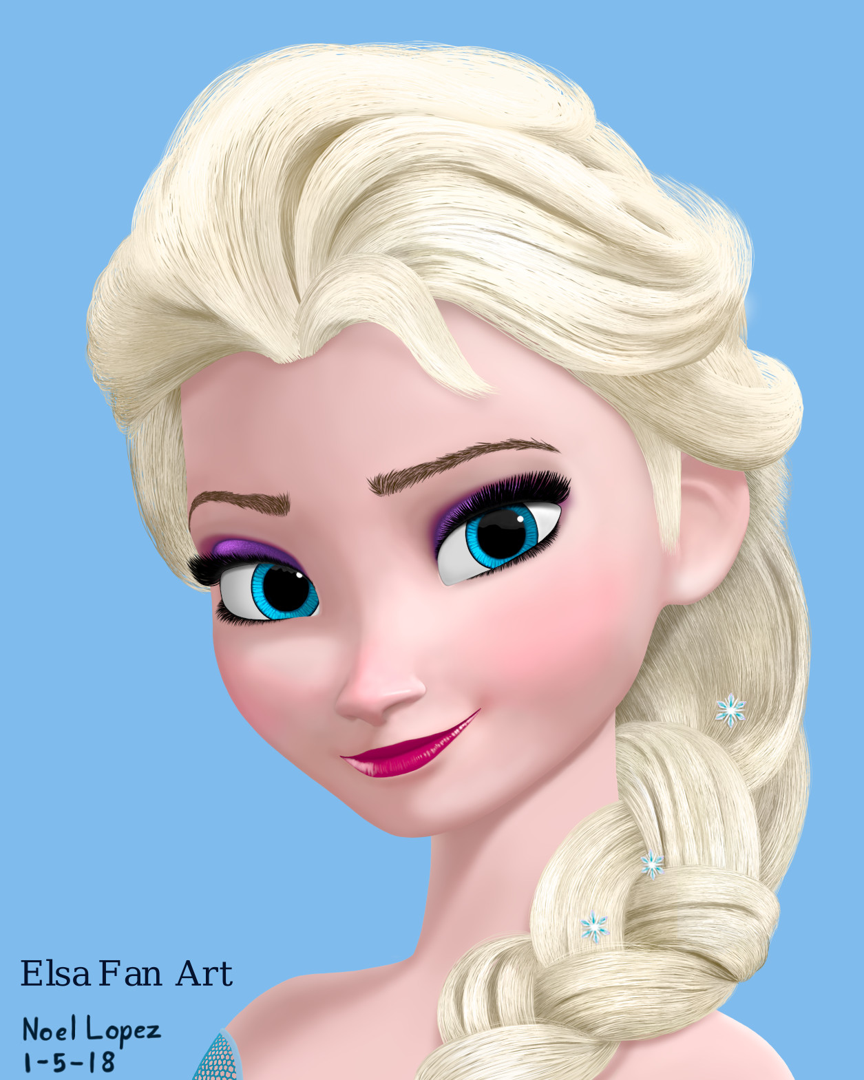 I started this fan art on May 31st, 2015. This is a digital painting of Elsa from Disney’s Frozen, and she’s not done yet. I’m also drawing Anna. I didn’t originally plan to make them so detailed, but this is my favorite way to draw, or do anything, and Frozen truly is my favorite movie!