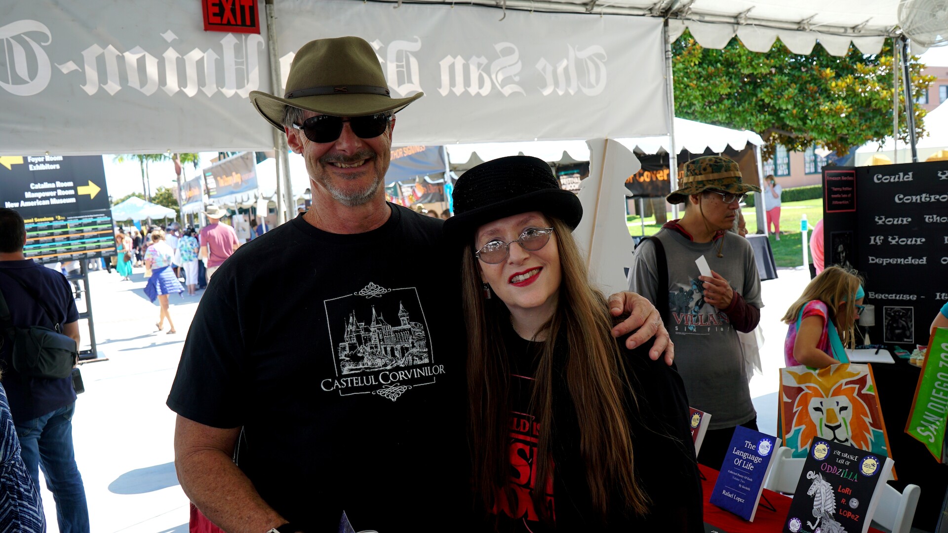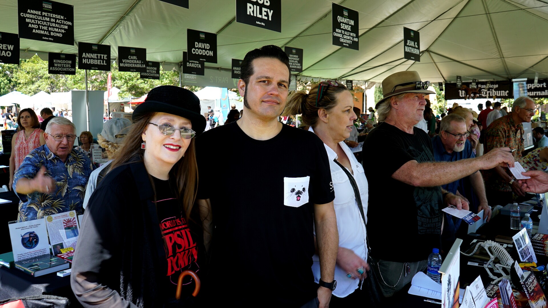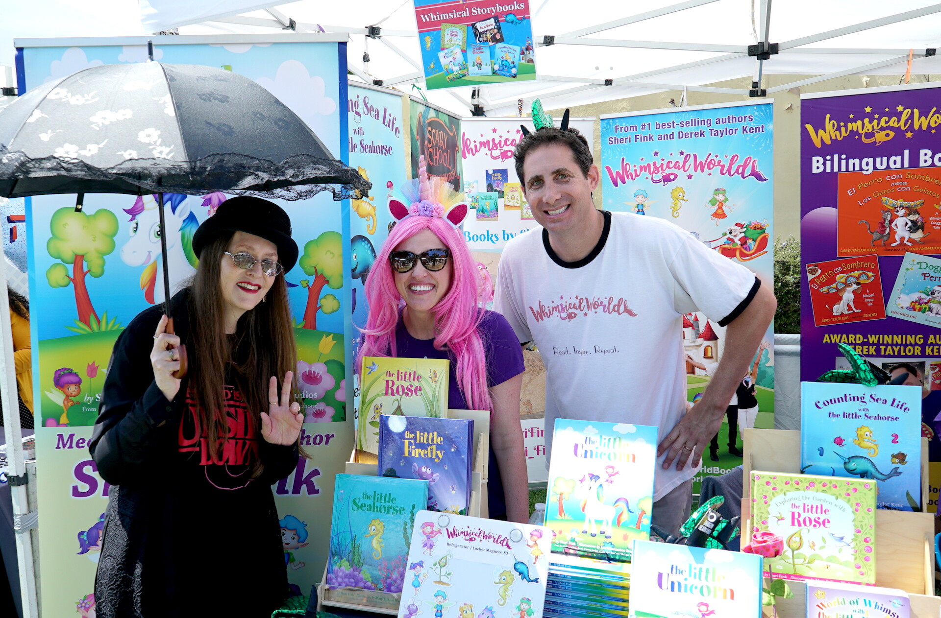 We were in Author Alley Part 1 for The San Diego Festival Of Books at Liberty Station on August 24, 2019.  It was a fantastic day of meeting and enchanting readers with new tales!  Also, greeting friends and fellow authors from HWA San Diego, Orange County Children’s Book Festival and other events:  Chris, Stephanie and Sawyer Robertson;  Sheri Fink and Derek Taylor Kent of Whimsical World;  James Jensen; Richard Lederer; Chad Stroup; Mark A. Clements; Richard W. and Crystie Goldsmith.