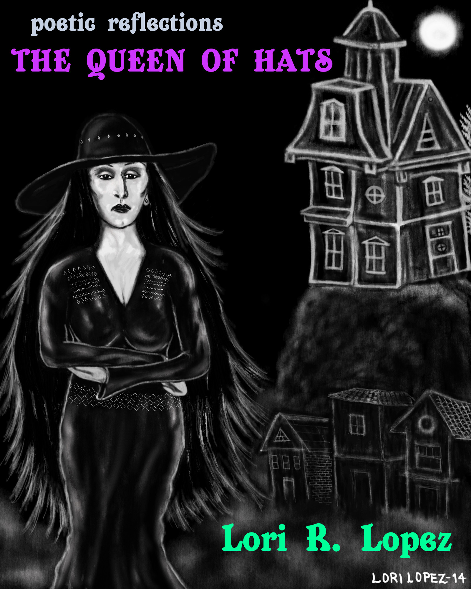 “In POETIC REFLECTIONS: THE QUEEN OF HATS, poet Lori R. Lopez presents herself as a kind of gothic empress of the spooky and macabre. It’s selling Lopez short to cast her only in that role. Her style is more a combination of Ogden Nash, Charles Addams, and the Edwards Lear and Gorey; this applies to her artwork as well as her writing. It’s hard to feel morbid when reading verses with such wit, humor, natural rhythm, and clever rhymes. Lopez is also a talented storyteller. The title poem is an epic that describes a coven of witches unleashed in Murgledoon and ultimately dispatched by Eldritch, the Hat Queen. The spooks-and-spirits poems are fun, but not all the poems are draped in mourning and cobwebs. For instance, “urban gothic” logs the desecration of the natural world as the honest horror it is; “poignant thoughts” shares the poets musings on one Mother’s Day. “fruitcake” is one of a series of poems that grafts images of Halloween with the Yuletide, often with hilarious rather than frightening results. . . . Lopez’s writing deserves a terrific showcase that gets her the enthusiastic readers she deserves.”